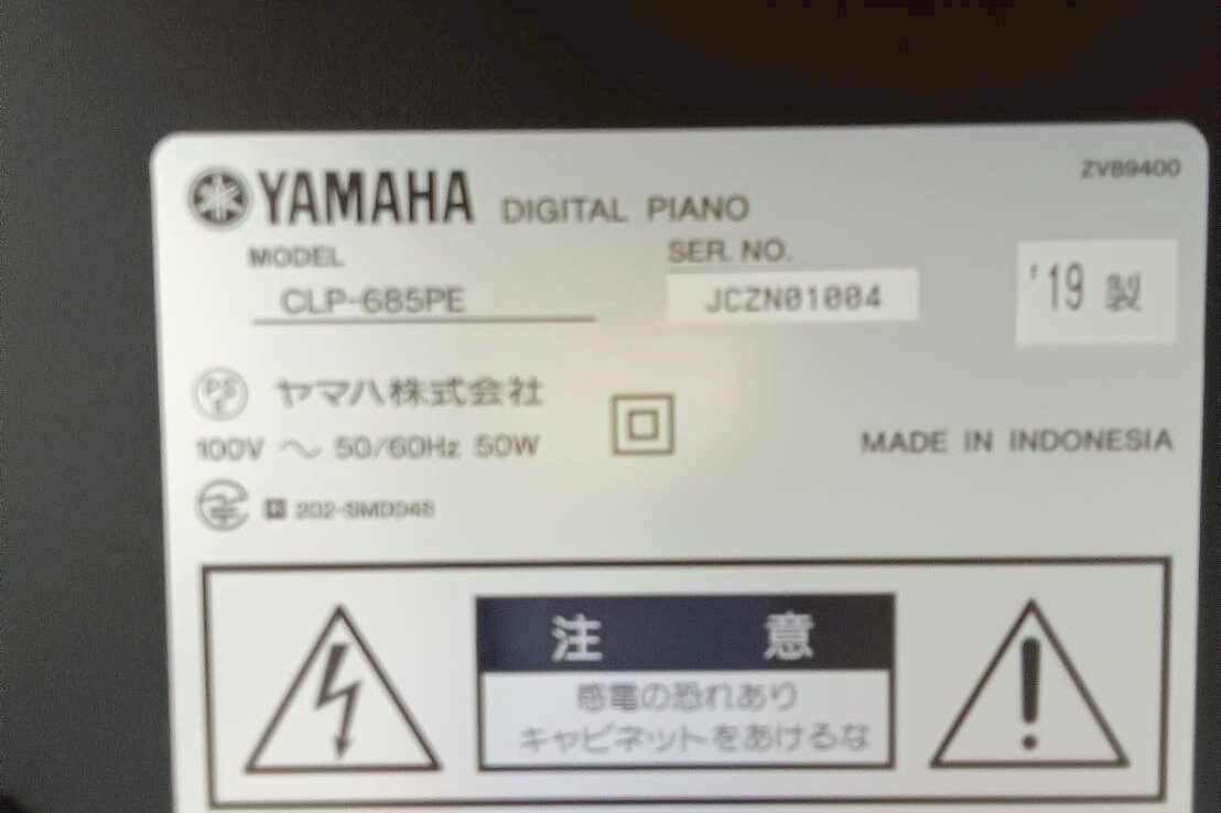 YAMAHA CLP-685PE YAMAHA 2026.03.28 メーカーYAMAHA 価格195,800円(税込) モデルCLP-685 製造年2019年製 付属品専用椅子、取扱説明書 ピアノ種類デジタルピアノ 色鏡面仕上げ ペダル3本 サイズ幅146.1cm 高さ102.7cm 奥行46.5cm 質量kg 配送設置基本料金東京 神奈川16,500円(税込)~ 埼玉 千葉17,600円(税込)~ 階段作業費(1階毎)+5,500円(税込)